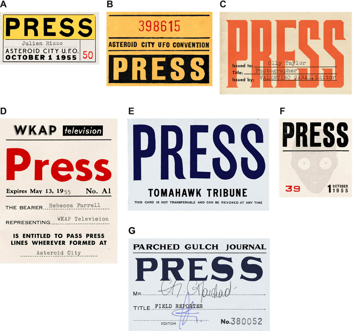 The heart of the city is filled with signs, which suggest the setting of the story: a retro-futuristic American Southwest of the 1950s, by orienting the viewer and making continuous references to extraterrestrials and UFOs. The lettering was handmade to maintain the authenticity of the 1950s period, when technology didn't exist, so digital fonts wouldn’t have been used. Therefore, the hand-lettering was based on the styles that signwriters copied at the time.