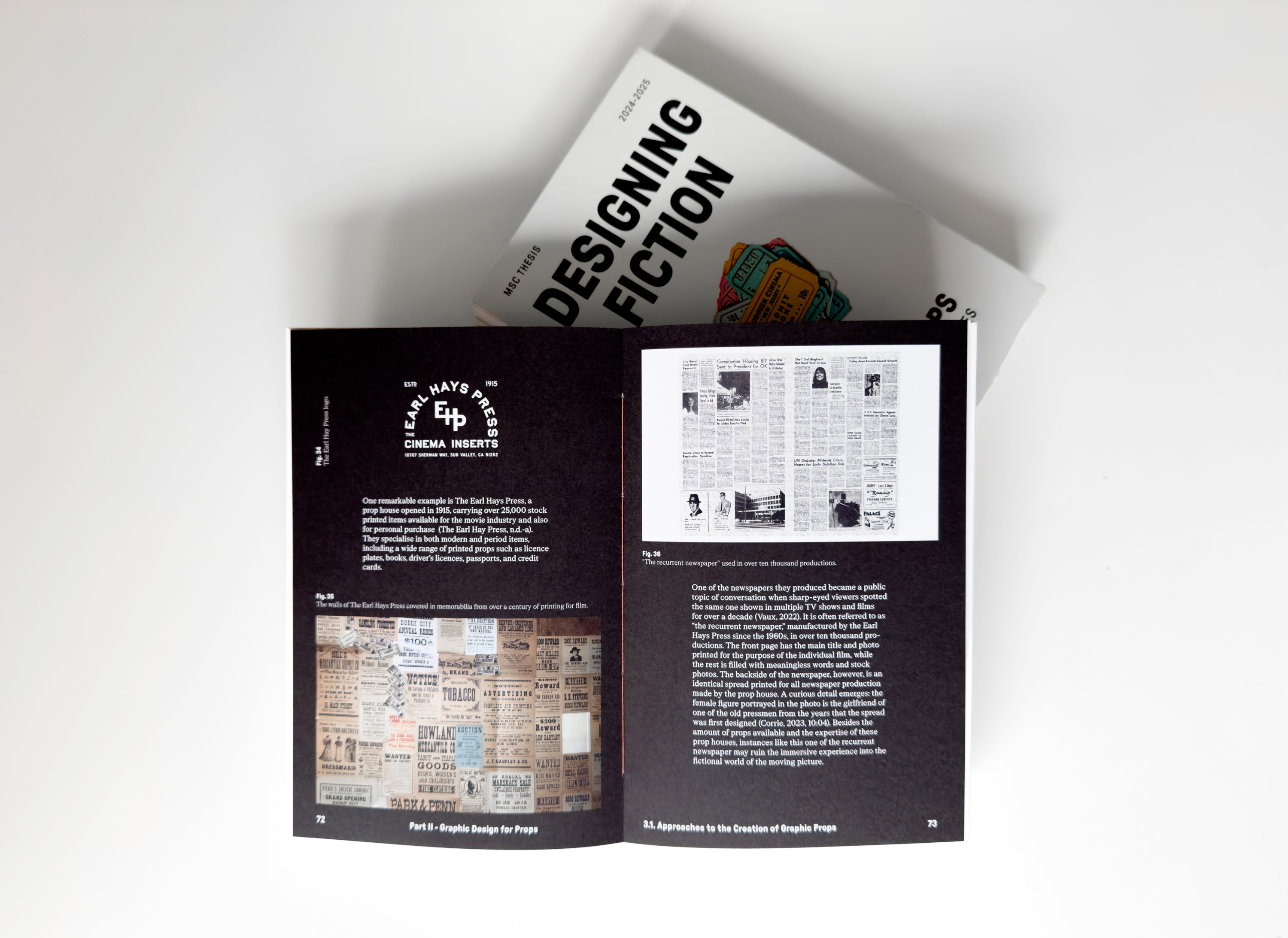 A graphic prop can be regarded as a communicative artefact that, within the cinematic context, functions as a prop, designed to enhance the storytelling process. Originating from a communication design approach, graphic props typically contain textual and visual elements that need to be organized to convey a certain message, either to sustain the illusion or to unfold the events of the story. Their form is shaped by the diegetic elements of the story, like genre, time and place, characters, and events.
